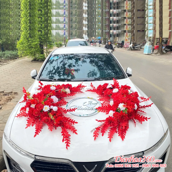 Mẫu hoa giả trang trí xe cưới luôn Đảm bảo chất lượng, hoa bền đẹp.